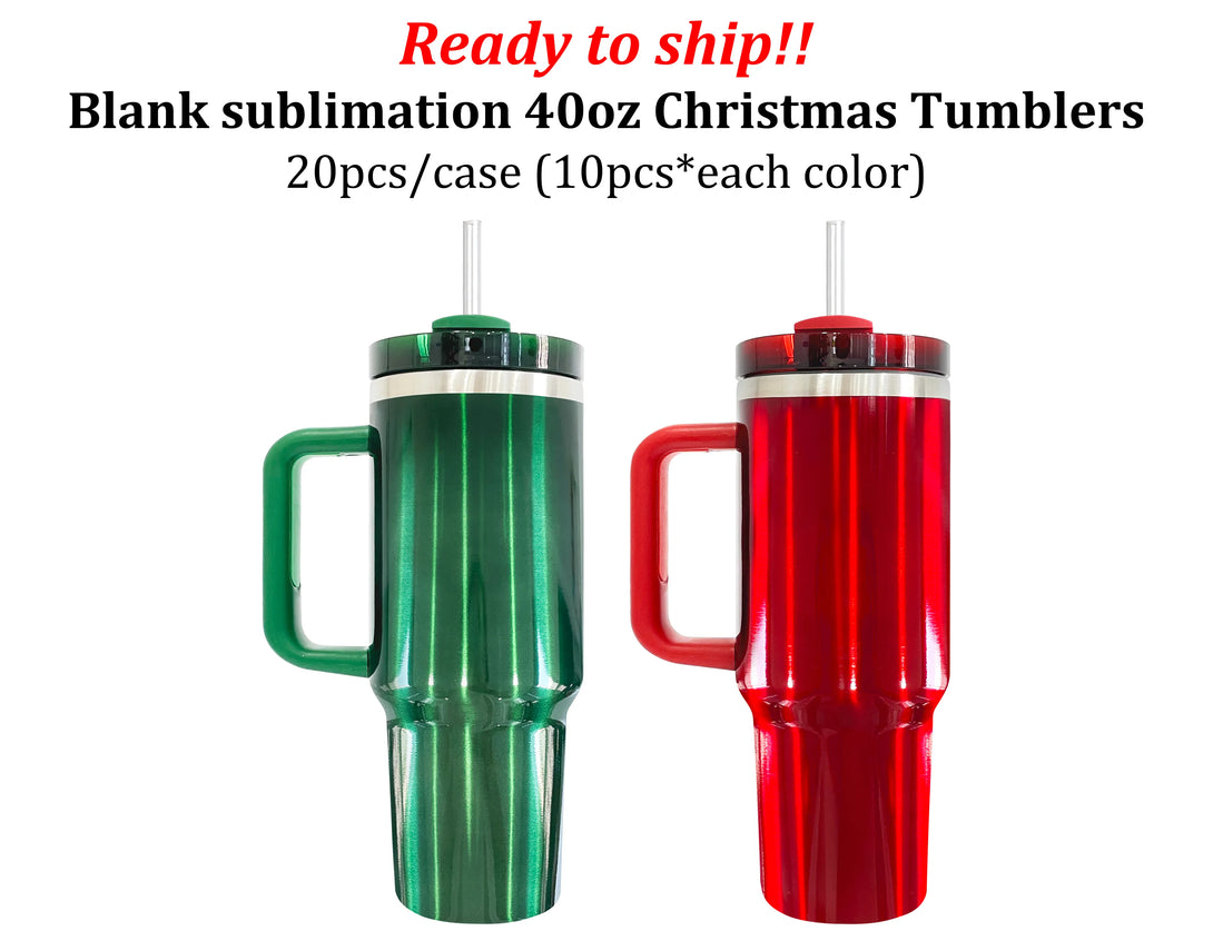 40oz US Warehouse stainless steel Christmas gift red and Green sublimation glossy Laser engraved travel mugs tumbler-20 pack