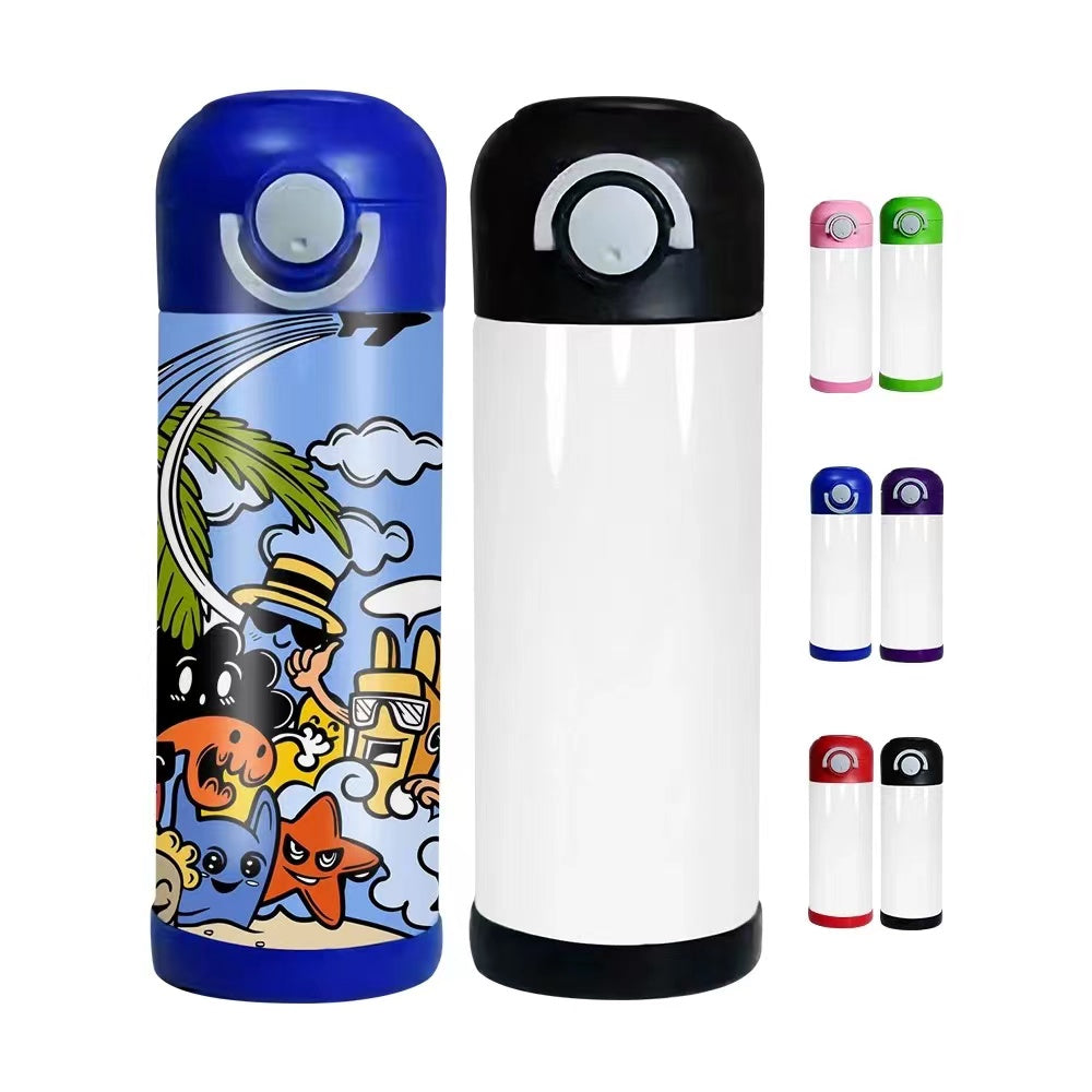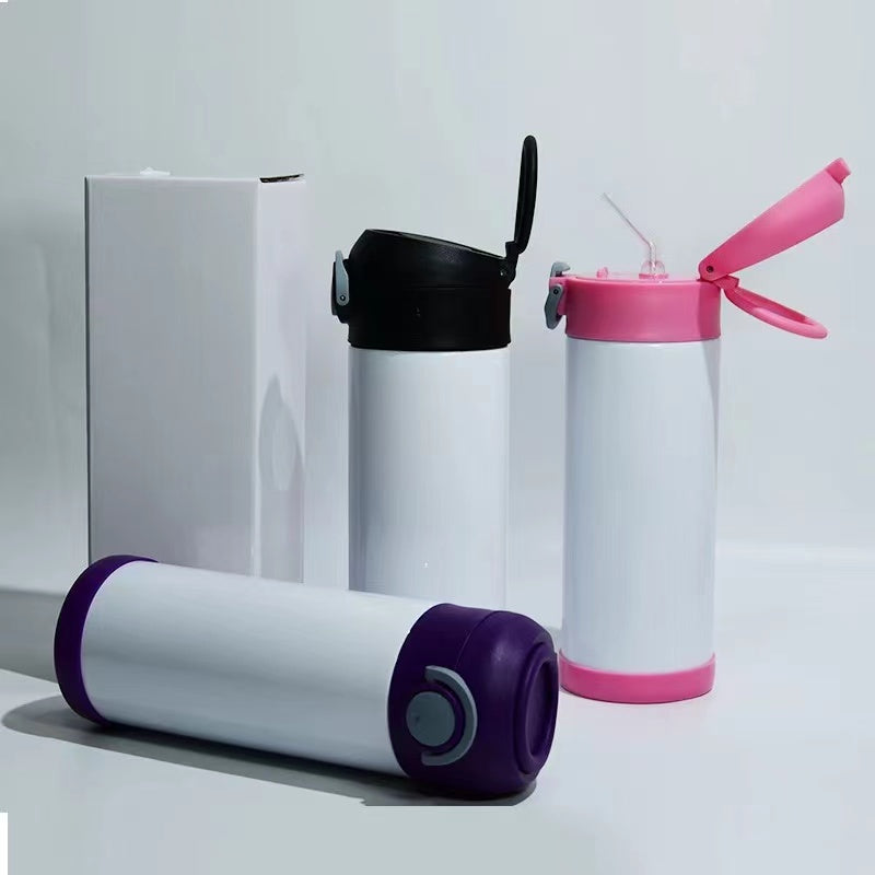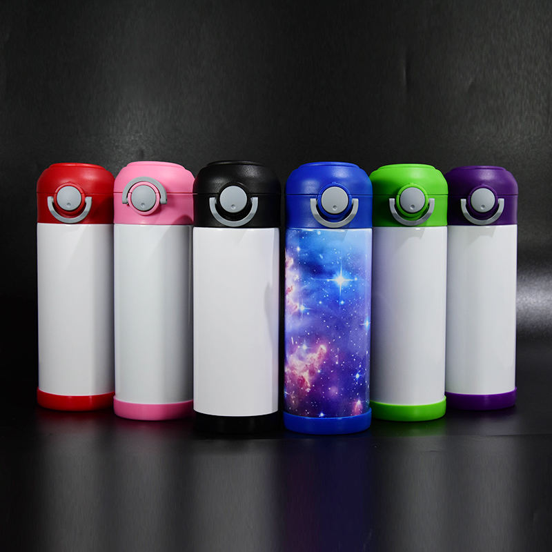 12oz wholesale sublimation kids water bottle with pop-up lids mixed color case -50pcs